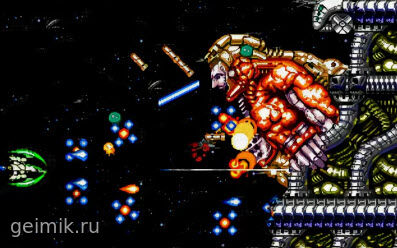 Боссы: в конце каждого уровня — крупный босс с уникальной схемой атак (пульсирующие снаряды, залпы ракет, движущиеся паттерны).